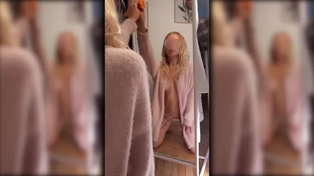 TIK TOK Challenge Wipe it down // Mirror Dildo Fuck and Suck // Horny Blonde Fit Girl wants BIG DICK