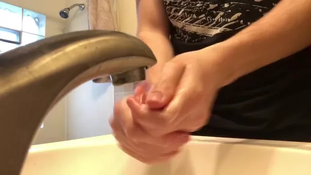 HOT TEEN WASHES HANDS AFTER GOING OUT IN PUBLIC DURING COVID-19