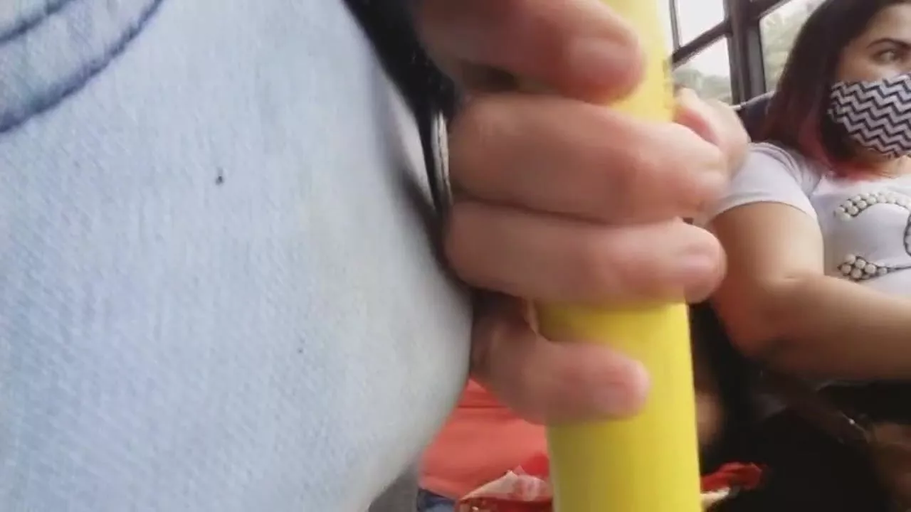 Lady looking bulge and touch hand