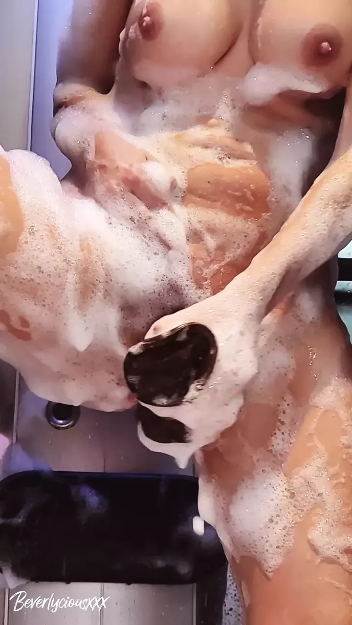 Busty MILF caught showering and masturbating with a huge dildo